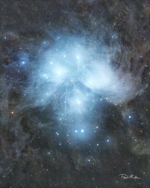 Interestingly, the "Seven Sisters" exists with a very similar stories in several ancient cultures, which may well have originated in a common story 100,000 years ago. Today, Atlas and Pleione (the two bright blue stars on the left) are so close that they blur together without a telescope. But 100,000 years ago, they were just far enough apart to be seen as separate stars. Somewhere between then and now, the 7th sister was lost, and hence the retained name "7 Sisters" over the ages and across cultures. There's a fascinating read about this on The Conversation (https://theconversation.com/the-worlds-oldest-story-astronomers-say-global-myths-about-seven-sisters-stars-may-reach-back-100-000-years-151568).